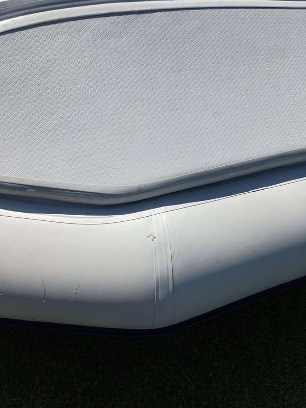 OK so I stuffed up on Wednesday when loading the boat back into my car. I ended up dragging it for a very short distance on tarmac, and when I got back and unloaded it was evident that the corner of a fold had borne the brunt of this, and not only worn a hole through the boat bag but quite badly scuffed a small section of the tube: