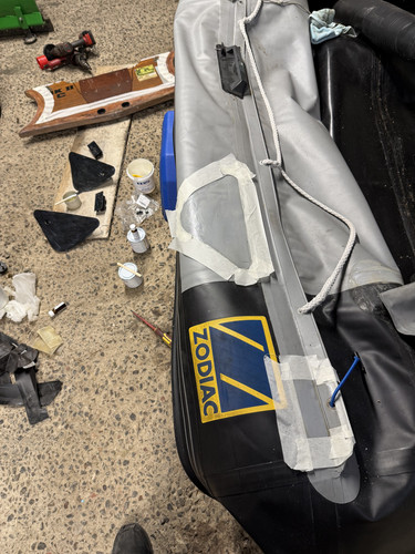 I've used hypalon glue to prime the transom and the rubber attachments like the grab handles and rowlocks.